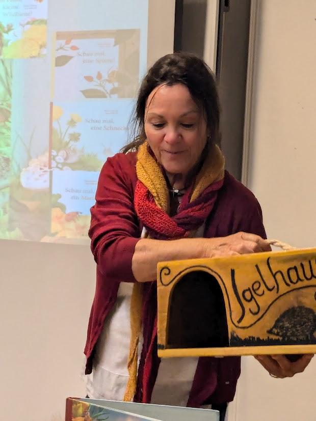 Schon zu Beginn war die Begeisterung im Raum spürbar. Die studierte Biologin Bärbel Oftring brachte nicht nur ihre Leidenschaft für Igel mit, sondern neben zahlreichen interessanten Details auch ein selbstgebautes Igelhaus und einen ausgestopften Igel selbst. Von ihrem Lebensraum, ihrer Ernährung und Paarung bis hin zum Winterschlaf lernten die Kinder auf sehr unterhaltsame Weise, wie wichtig Igel für unser Ökosystem sind. Die persönlichen Anekdoten über die Geräuschevielfalt, die Frau Oftring nach ihren persönlichen Begegnungen mit Igeln darbot, brachte alle zum Lachen.