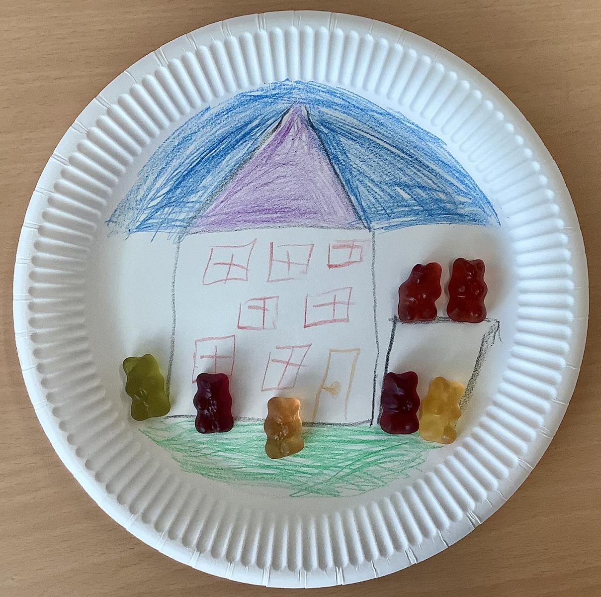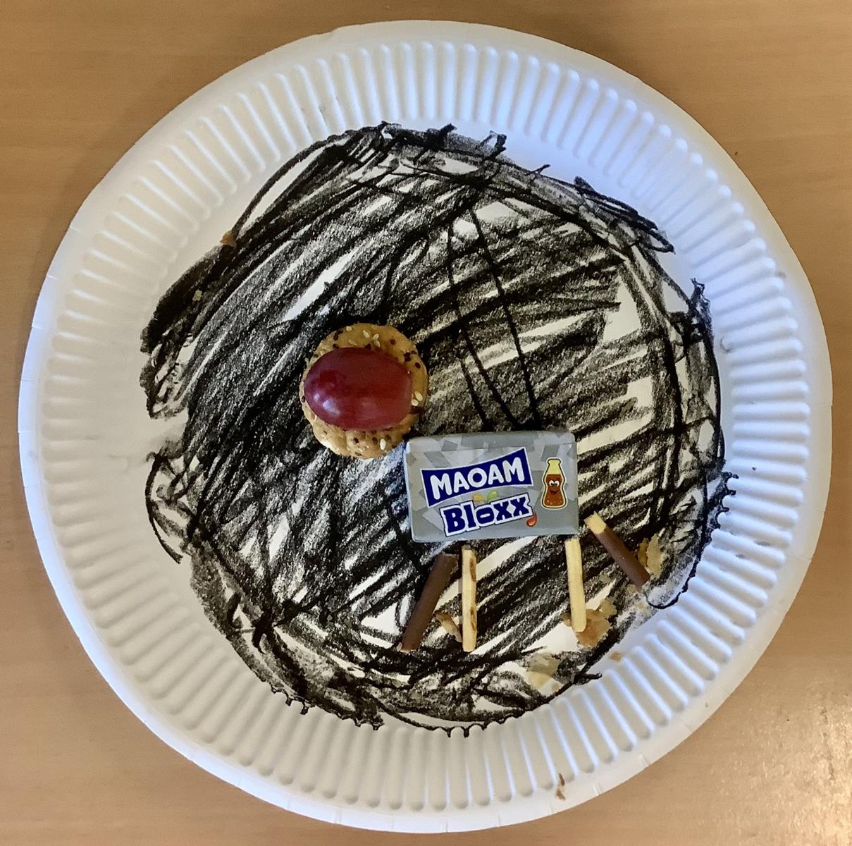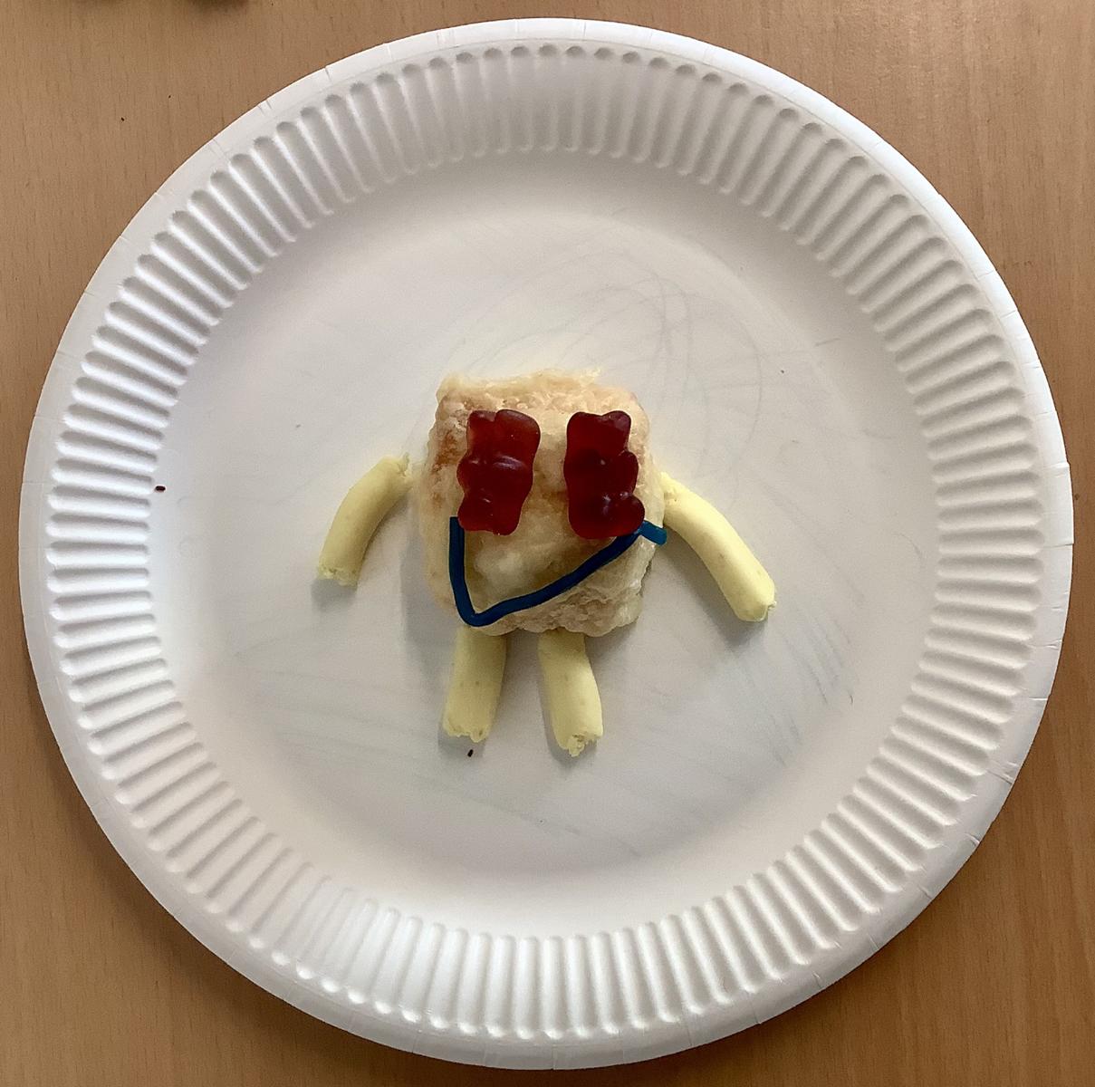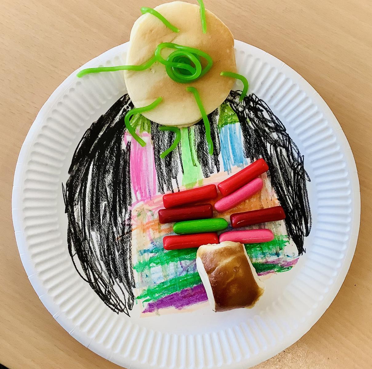 Dazu durften Pappteller als Hintergründe gestaltete werden, die Themen mussten aber durch Lebensmittel in Szene gesetzt werden.